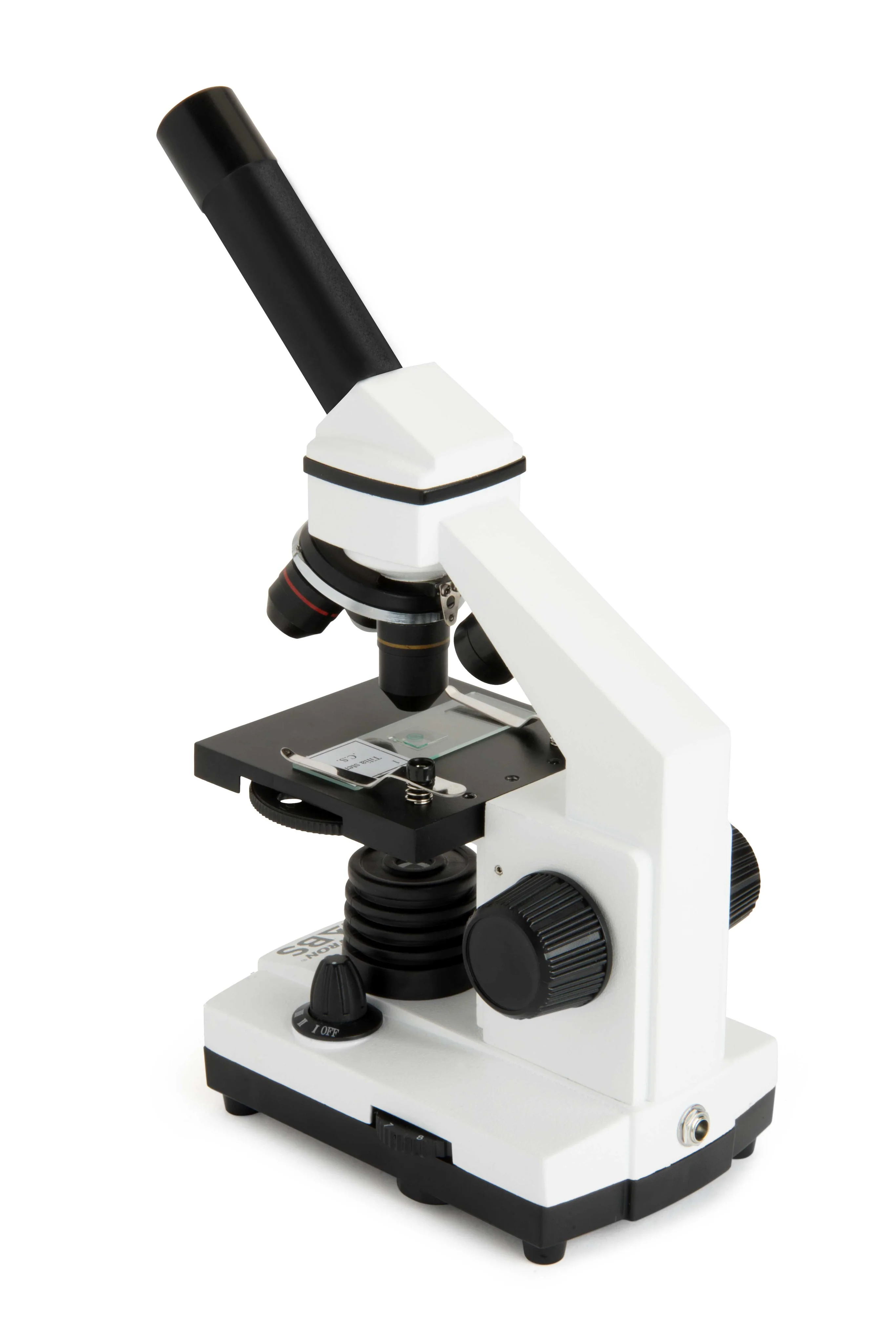 The Celestron Labs CM800 compound microscope offers today's latest advances at an economical price, including upper and lower LED lighting that provides bright, natural colors, yet stays cool to the touch. Two included eyepieces (10x and 20x) and 3 objective lenses (4x, 10x and 40x) allow for magnifications of 40x, 80x, 100x, 200x, 400x and 800x.