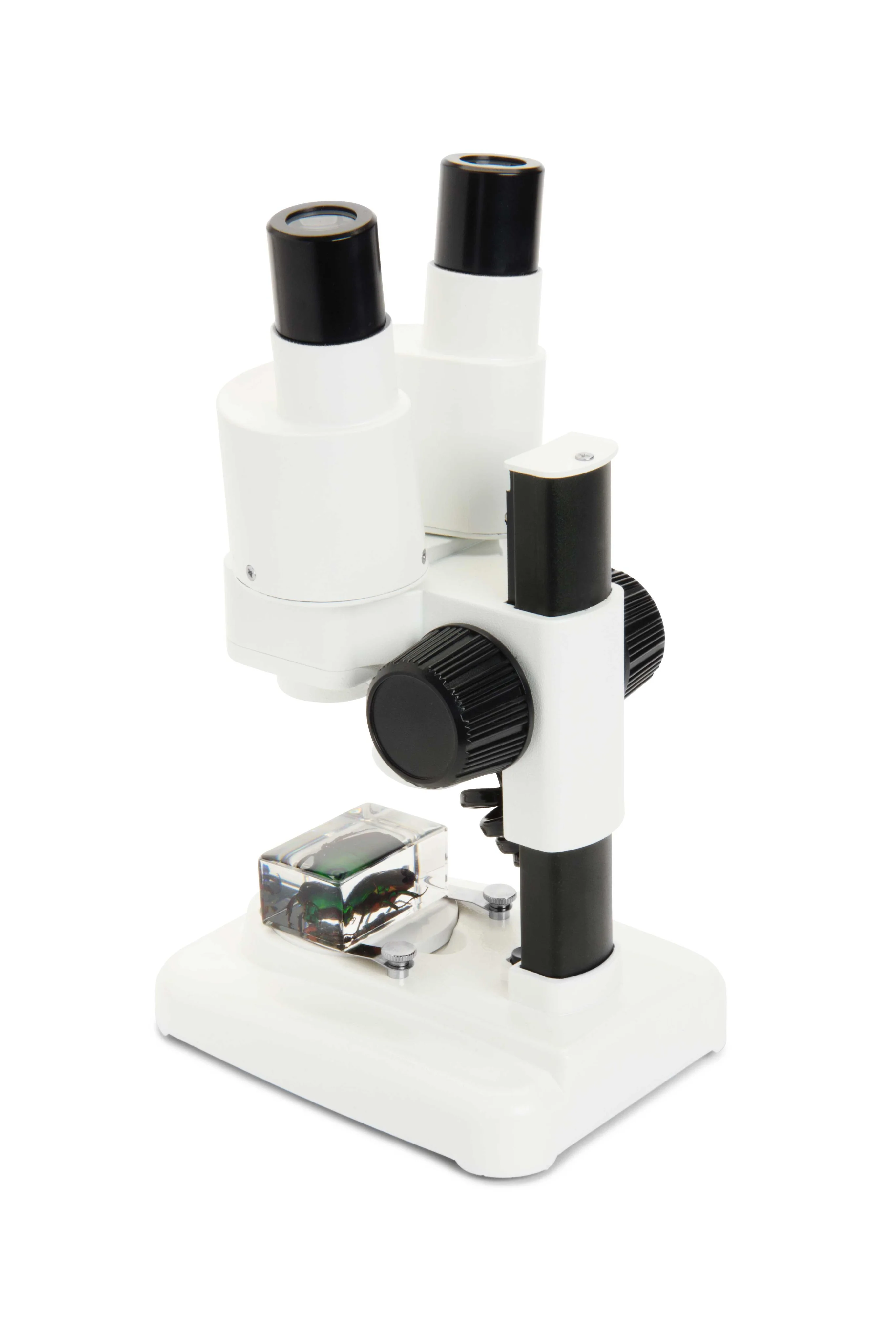 The Celestron Labs S20 is the perfect introductory stereo microscope offered at an economical price. With its 20x power, it’s well suited for viewing details on 3D objects such as leaves, insects and many other objects. The upper LED illuminator provides detailed viewing and with the removable stage plate there is an option for bottom lighting (user supplied). You’ll enjoy exciting discoveries right out of the box with the two included insect specimens. The S20 Stereo Microscope is light and easy to carry in the field making it well suited for hobbyists and students.