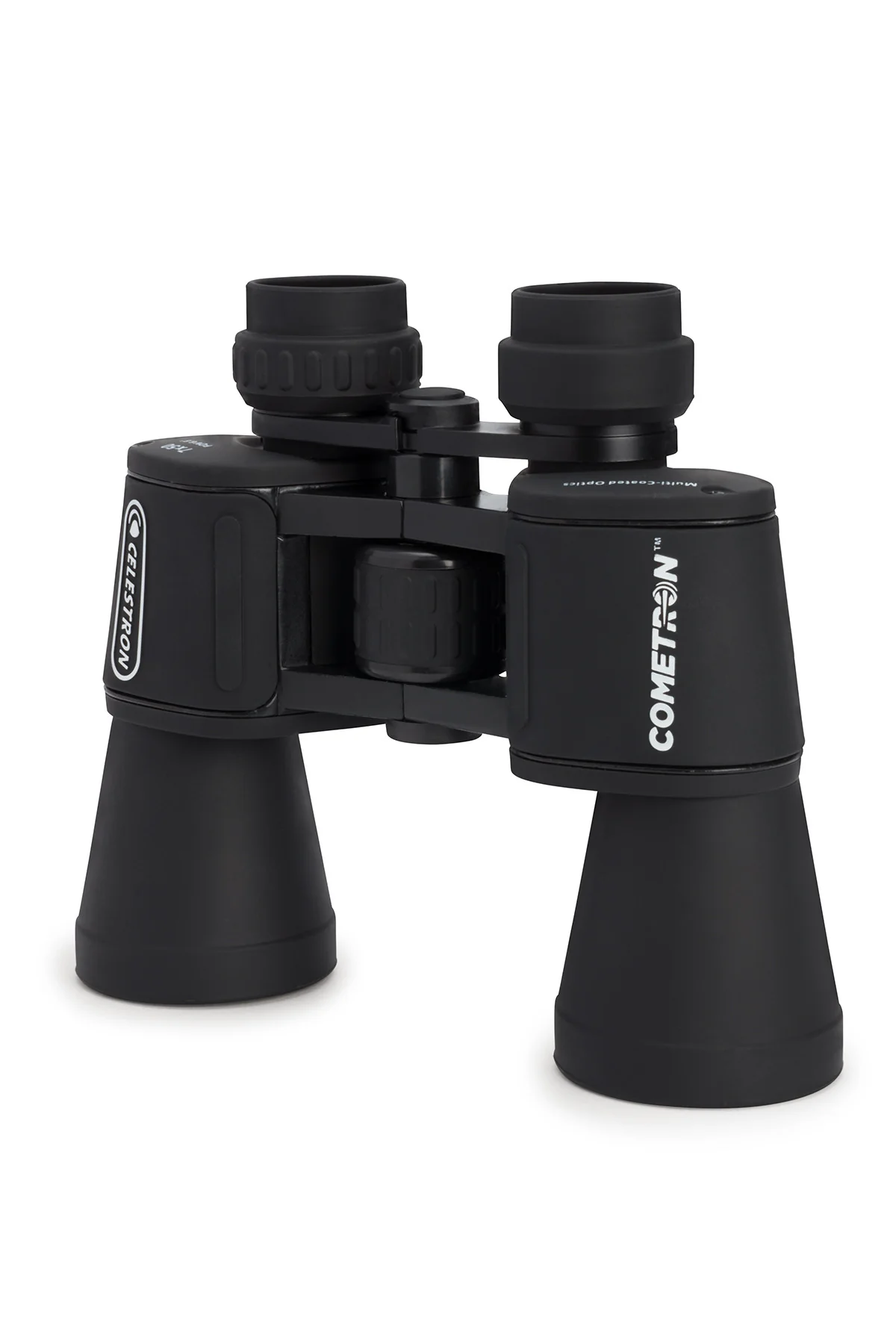 Get ready for the next awe-inspiring comet with a pair of sleek, portable Celestron Cometron 7x50mm binoculars. The large 50mm objective lenses and multi-coated optics offer amazing light-gathering capabilities that bring celestial objects into bright, sharp focus, making them ideal for comet watching, stargazing, and viewing craters on the Moon. Cometron 7x50mm’s wide field of view lets you explore expansive swaths of the sky to quickly pinpoint exactly the object you want to see, then keeps it in your sights without constant movement.