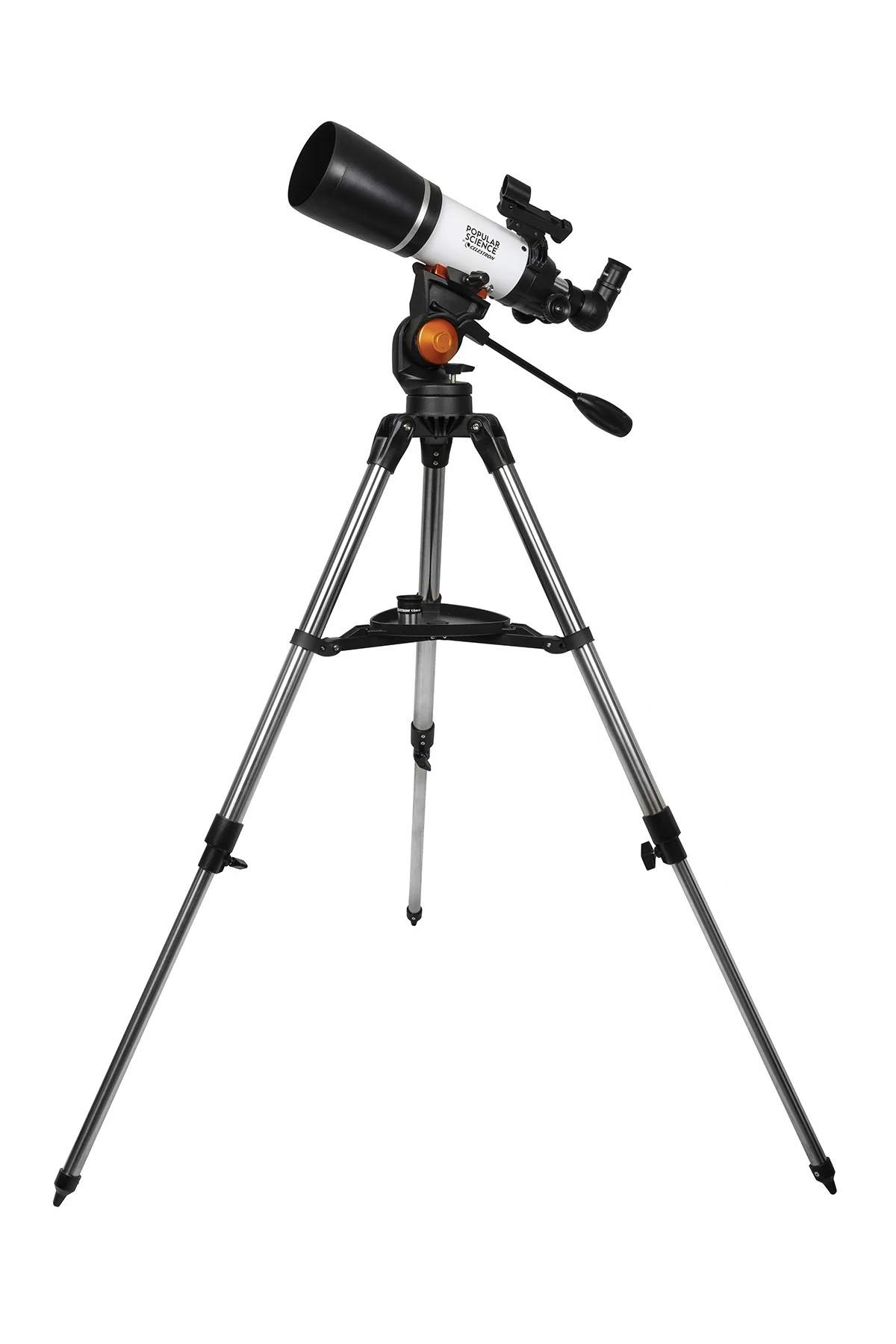 Navigate the sky confidently with your Popular Science by Celestron AstroMaster 80AZS’s intuitive pan handle. The Alt-Az control with clutch allows for smooth tracking and accurate pointing. Like a photographic tripod, you can move the clutch in an up/down, left/right fashion to follow your object in the eyepiece.